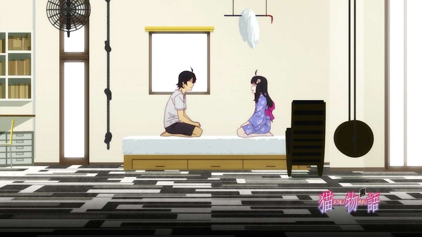 His comically slanted definition of “love” is the perfect foil to Hanekawa, who doesn’t know what real love is. Growing up with adoptive parents, she never grew up with the nurturing care of her real parents. Her adoptive parents don’t seem to care much about her, and Hanekawa even believes that they wouldn’t notice if she didn’t come home. There’s a chilling scene where Koyomi discovers that she doesn’t have a room in her house. Hanekawa’s kindness stems from her desire to be “perfect” on the outside, and as a result, her kindness is completely hollow. By the end of Golden Week, Koyomi realizes that he was never in love with Hanekawa, but his experiences during Golden Week taught him to feel compassion for others, which explains his actions during Bakemono. Similarly, while Hanekawa loses her memory of the events during Golden Week, her actions change Koyomi’s personality and later causes her to fall in love with him. Love and compassion are big themes this time around, and really help to develop the characters.