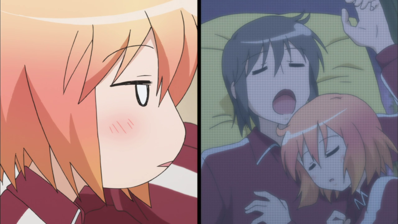 Moritani finally joins the ESP Research Society this episode, giving it its fifth and final member! Like with Kotoura and Manabe, Mifune asks Moritani what her special ability is. Hilariously, she says her power is psychokinesis, which she is able to show off by blowing out candles with the force of her fist. Awesome. The club members also spend the Saturday night at Kotoura’s new apartment (closer to Manabe now). It’s an evening filled with cooking misadventures, bad psychic flicks, and odd sleeping arrangements. In fact, Kotoura falls off her bed in her sleep and lands next Manabe, which Mifune takes the chance to snap a quick picture.