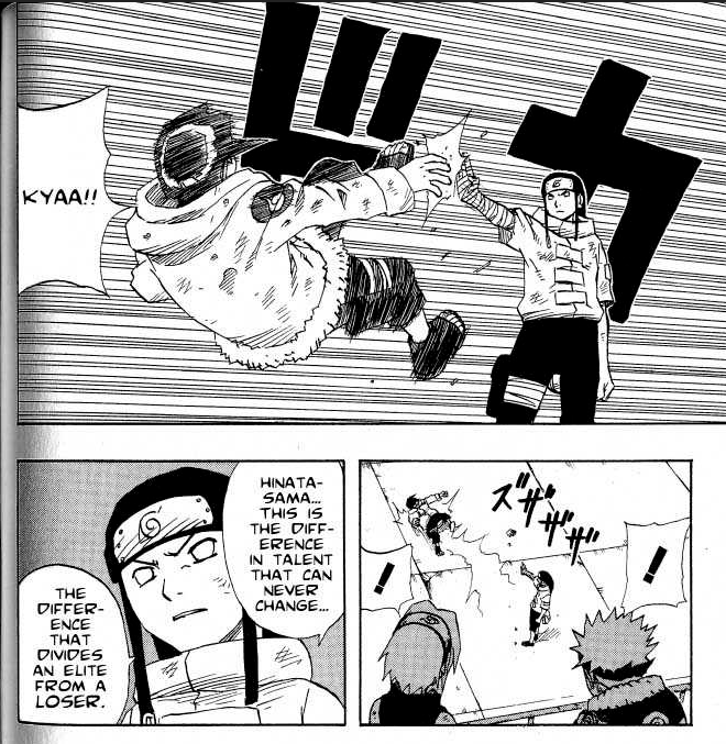 screaming at your screen because you know that Neji and Hinata had a very serious fight during the first round of the Chuunin exams. The only problem with that is the fact that they made Neji out to be a bad guy during that part of the story. Obviously, Neji is a good guy, but he was kind of an asshole during the Chuunin exams. The only way to allow for a mixed gender fight between good characters is to make the guy seem bad for a little bit. Although Neji’s attitude aided parts of the story, it just seems a little too convenient to throw out that fight during that arc of the story.