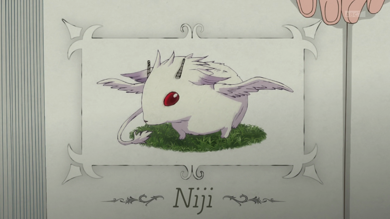 After Nai slips into unconsciousness from the battle last episode, a doctor takes the opportunity to examine his body. He comes to the conclusion that he’s actually an animal! Well, maybe it’s a little more complicated than that. Apparently, there is a species of Kyuubey looking rat animals called Niji that live on an island that’s protected by electromagnetic waves that refract light and create mirages. Since Nai’s body composition resembles that of the Varuga monsters, it’s suspected that he is in fact a product of someone’s experiment that combined human cells and Niji cells. This, along with the habitat the Niji live in, explains Nai’s amazing hearing as well as his rather docile personality.