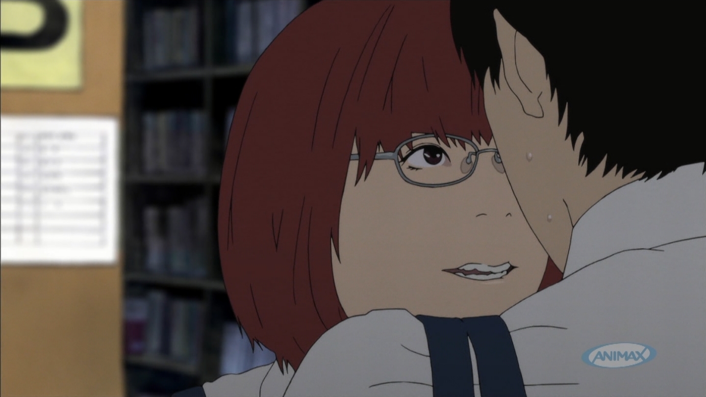 We finally see the event that sets off the chain of misfortune, as Kasuga impulsively steals Saeki’s gym clothes and takes them home with him. Why did he take them? Even he can’t explain, though I can guess it has to do with some dark inner desire and his infatuation with Saeki as his “muse” in life. He spends the following day sweating bullets when the entire class finds out that someone stole Saeki’s clothes. As he contemplates fleeing the town, he runs into the creepy red-head Nakamura, who reveals that she witnessed him steal the gym clothes.