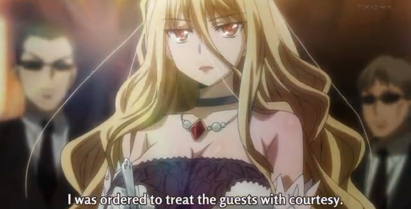I have been waiting on something like this. An episode that actually focuses on the plot of the anime is always a good thing. Seeing Kiri and Seigi going at it again was nice, but I did not expect round two to occur this soon after they were interrupted at the school trip. Having said that, this was the most excited I have been during this entire series. There were a few things that bothered me about the fight with the escaped prisoner. Although the fight ended in a somewhat questionable matter, it is pretty obvious what the out is going to be. Unfortunately, any mystery regarding that was crushed by the preview for next week. I guess the fact that nothing was fatal was apparent enough for the director to think that it was alright to show it in the preview. I am really hoping that the rest of the season can continue on this path. Kiri is really starting to grow as a fighter and I am really surprised by how this altercation was handled. I was worried about how fights would go with all of these unorthodox weapons, but the writers did a great job of choreographing a very cool fight. I might sound like someone who has action on the brain, but this series needed it. Let’s just hope that they remember that this is an action series.