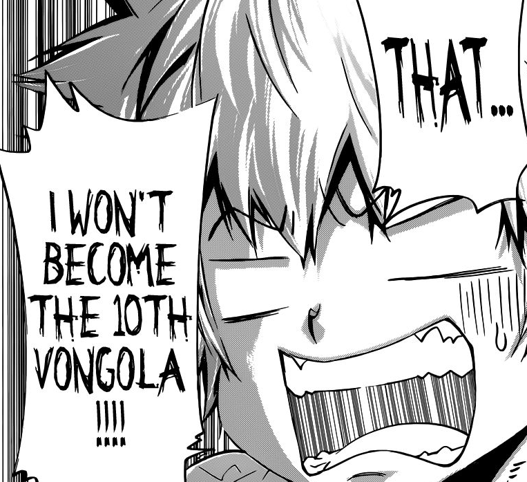 Much like any big manga series, there are way too many characters. I will go over the main good guys as individuals and as many other people as groups as I feel like is necessary. Tsunayoshi Sawada is the main character. “No Good Tsuna” is his nickname because he sucks at everything. However, he has that protagonist drive that makes him want to protect his friends. Tsuna is the descendent of the Vongola Primo, the first head of the Vongola Family, and this means that he holds the power of the orange sky flame. Hayato Gokudera is from the main branch of the family and he has come to Japan in order to become Tsuna’s right hand man. He may be a hothead, but the guy is really smart. Hayato uses dynamite as a weapon and wields the power of the red storm flame. Takeshi Yamamoto is a very popular person from Tsuna’s high school. Being on the baseball team gives him a natural athleticism that helps him out when he is fighting. Takeshi uses a sword style that his father taught him and the power of the blue rain flame. Ryohei Sasagawa is a boxer from Tsuna’s high school with a very bright personality. Tsuna knows him because he is Kyoko’s brother. The guy uses his boxing skills and the yellow sun flame in his fights. Chrome Dokuro is a young girl that was saved by Mukuro Rokudo. Mukuro is a dangerous criminal that uses illusions in order to accomplish things outside of his prison cell. He uses his powers to help keep Chrome alive. Chrome lost many of her vital organs in an accident, but she can be kept alive by replacing them with powerful illusions. Chrome uses illusions and the indigo mist flame. Lambo is a baby that is dressed like a cow. Even though he is from another mafia family, the little guy hangs out with Tsuna’s gang. He uses the Ten Year Bazooka to swap places with his future self during fights. Lambo uses his horns and the power of the green lighting flame when fighting. Kyoya Hibari is the head of the disciplinary committee at Tsuna’s school. The guy is very tough and he uses the phrase “I’ll bite you to death” when he is after someone. Kyoya is the strongest member of Tsuna’s team and he is always looking to defeat strong opponents. He uses tonfa and the violet cloud flame in battles. Kyoko Sasagawa is the girl that Tsuna likes and she plays a pretty big role in the story even though she doesn’t fight. Haru Miura plays a similar role, but she is in love with Tsuna. Reborn is a cursed baby known as an Arcobaleno. He is the world’s greatest hit man and the one that is guiding Tsuna down the road to becoming the next head of the Vongola Family. The Vongola Family is the most powerful Mafia Family in the world. The Varia are a powerful group under the Vongola Family. The Arcobaleno are all cursed babies with extreme capabilities. Everything basically follows this pattern and we meet quite few mafia families along the way.