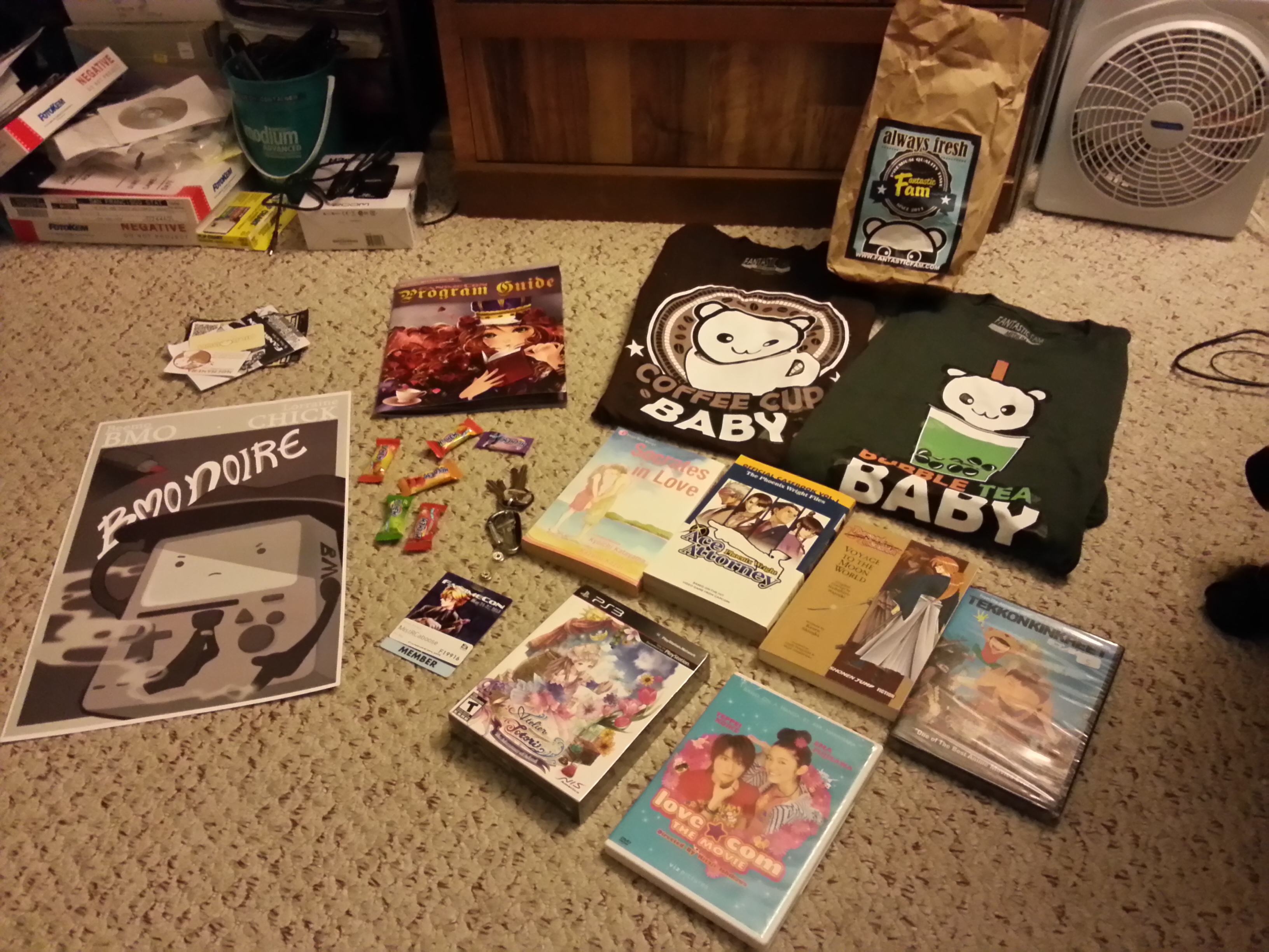 What I ended up spending money on was at the Swap Meet next door. Just like an otaku’s flea market, people could sell and trade their unwanted items, ranging anywhere from old manga, CDs, toys, posters, and other miscellaneous junk that they wanted to get rid of. There was a lot of stuff I wanted, and ended up spending the most money here. I picked up the premium edition of Atelier Totori for $50, which had sold out last year from the NIS store. The crowds got ridiculous to the point that it was difficult to move around, so I had to wait an hour or two as the crowds died down. As it came close to closing time, dealers started selling their items at discounts, and I managed to get Ace Attorney Official Casebook Vol. 1 for $2, the Love Com live-action movie and the Rurouni Kenshin light novel for $5, and Socrates in Love for $1. Great deals all around, and I was a happy camper.