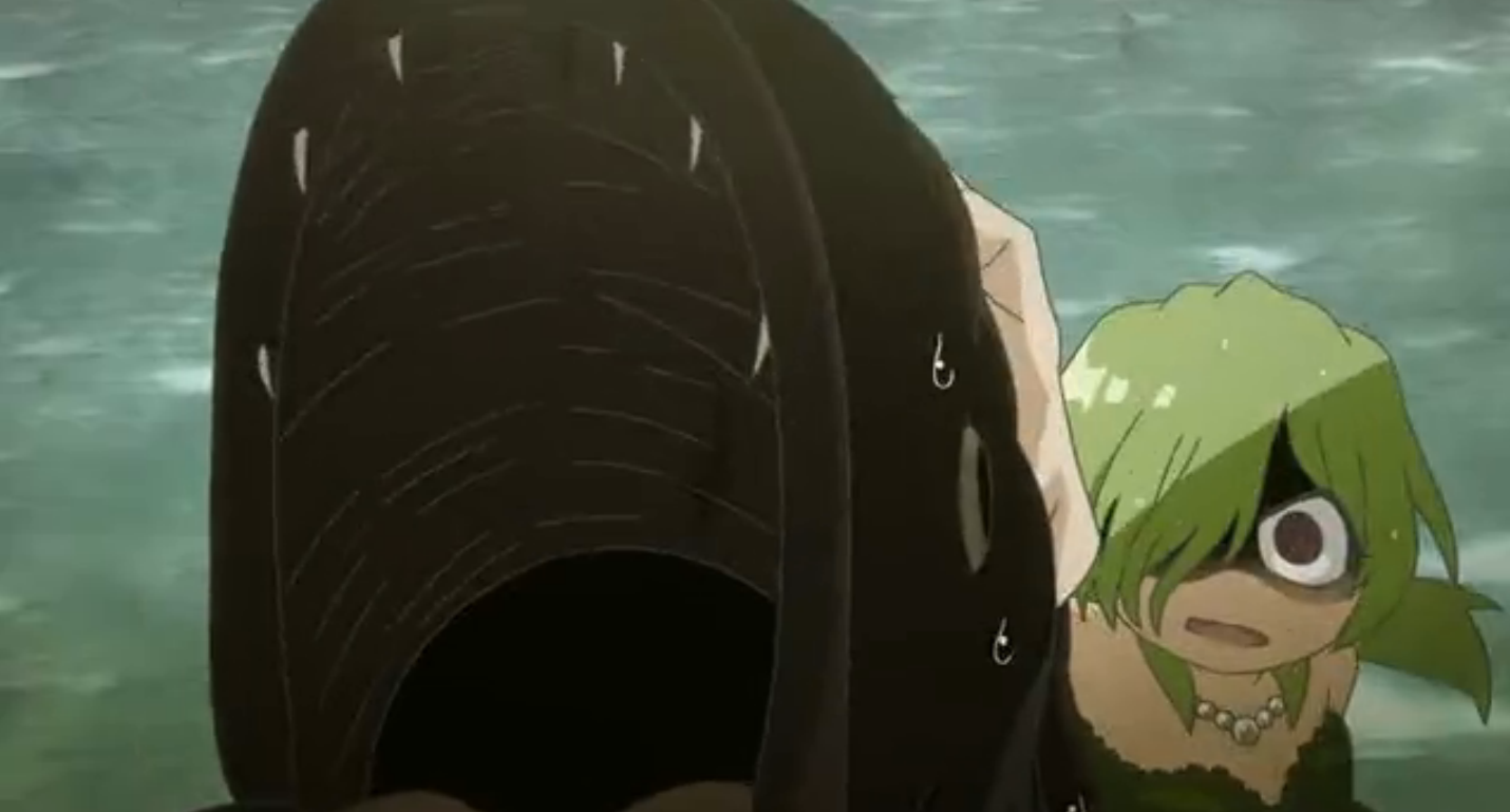 It is becoming a chore to watch this in all honesty. Even the gag that I thought was pretty interesting has been beaten to death. I used to think that the food chain thing was interesting because I always wondered how mermaids would fit into that if they were real. Have you guys ever watched Mermaids the Body Found? It is a pretty interesting special from Animal Planet that gives us a fake history of mermaids throughout their evolution. I enjoyed it way more than I am enjoying this series, but that may be because I am a huge geek. Once again, this episode would have been much better with a heavy dose of Takkun. Stop neglecting the straight man character because he is pivotal to the success of your jokes. I am looking forward to this series being over.