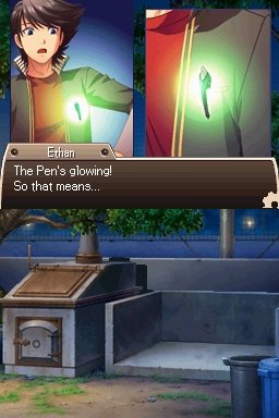 Like any good visual novel, Time Hollow’s claim to fame (if it had any, I suppose) is its amazing story. The plot revolves around a certain Ethan Kairos who finds himself as the wielder of the mysterious Hollow Pen, which allows him to draw portals to the past. Think Chalk Zone, Chrono Cross, and Portal. However, it’s not designed to go eons into the past. Instead, it’s used to peer on the time scale of decades, from what is really a parallel time line. The story of Time Hollow is ultimately an elaborate murder mystery, with a web of differing possibilities that it almost feels puzzle like in scope. It all begins when Ethan’s parents suddenly disappear on his 17th birthday. The reason? History was (almost quite literally) rewritten so that his parents actually died in an accident 12 years prior. Using a mysterious clue tied to his adorable cat Sox, Ethan discovers the Hollow Pen, and the quest to correct history begins.