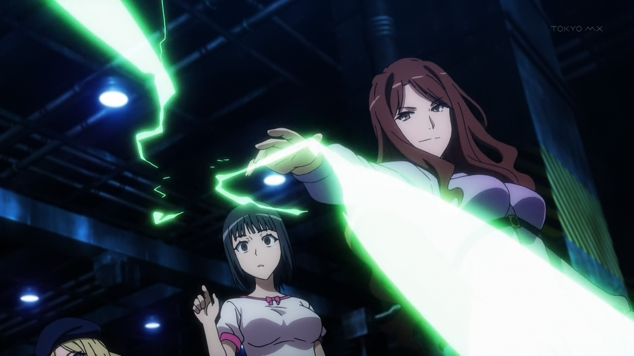 This week, we’re introduced to the rest of ITEM. The ringleader is Shizuri Mugino (CV: Ami Koshimzu, as in Kallen from Code Geass), the 4th strongest Level 5 in Academy City right behind Misaka. She uses her laser hands, which is infamously known as The Meltdowner, to blast holes in everything. Misaka hypothesizes that they work similarly to her own ability. So maybe they have similar properties to EM Waves? The next episode preview calls them “Particle Destabilizers,” which is a really fascinating.