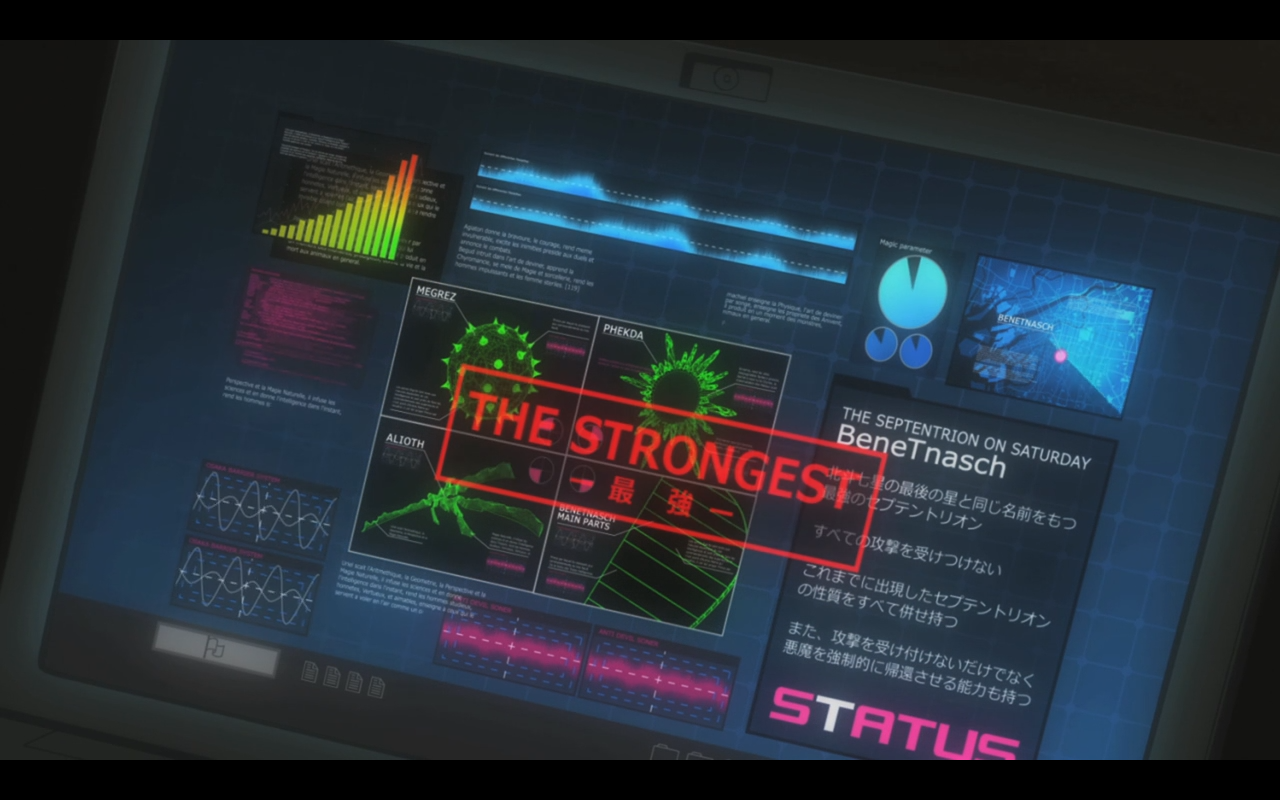 You’ve done it again anime….you’ve done it again. As things are winding down to the finale, our party is put into a fiercely intense battle with the last Septentrione, Benetnasch. Unfortunately for the crew, ace summoner Hibiki is still out of commission thanks to the previous Septentrione battle. Another event to dampen the mood for our heroes is the fact that they all received dead-face clips prior to the battle. Upon facing the turnip-shaped boss, everyone realizes that the thing is OP as hell. Meanwhile, Hibiki continues to sleep and dreams about his past interactions with his parents and Daichi. These scenes took up quite a bit of time and emphasized how important Daichi was to Hibiki as a childhood friend, which was a good thing, as it helped me feel that Daichi wasn’t as useless as a character. Anywho, the battle rages on and Benetnasch uses a cheap ability to temporarily remove all of the demons on the field. Fumi manages to disrupt the ability with her Trumpeter demon, but is spotted by the Septentrione and is subsequently annihilated. The rest of the party then dies one-by-one thanks to a ton of exploding ice cream cones.