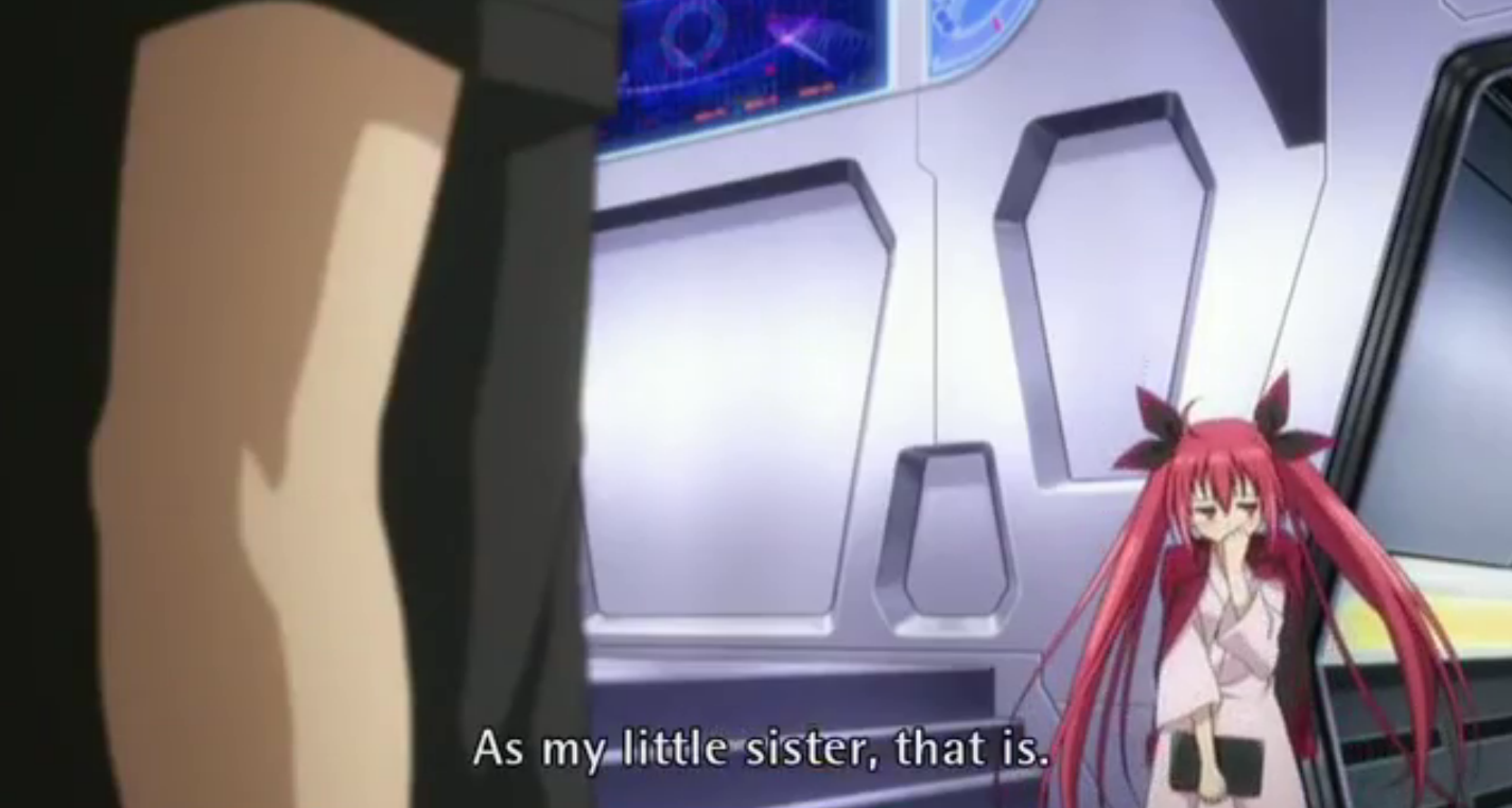 Good job writers. Even though they gave themselves an out by making Kotori his adopted sister, they made it so that Shidou only loved Kotori as a sister. Incest avoided for now. Kotori wasn’t too happy about this, but I really appreciated that line. What else happened in this episode? We got a glimpse of Kurumi, so we know that she hasn’t left the city. I guess that is something to look forward to in a possible second season. Oh, and Tohka basically confessed to Shidou. She said that she doesn’t like it when he kisses other girls. After that, they had two blue ball inducing kiss scenes that never connected. It is pretty clear that they are pushing that pairing. I guess we need to wait on the OVA for more.