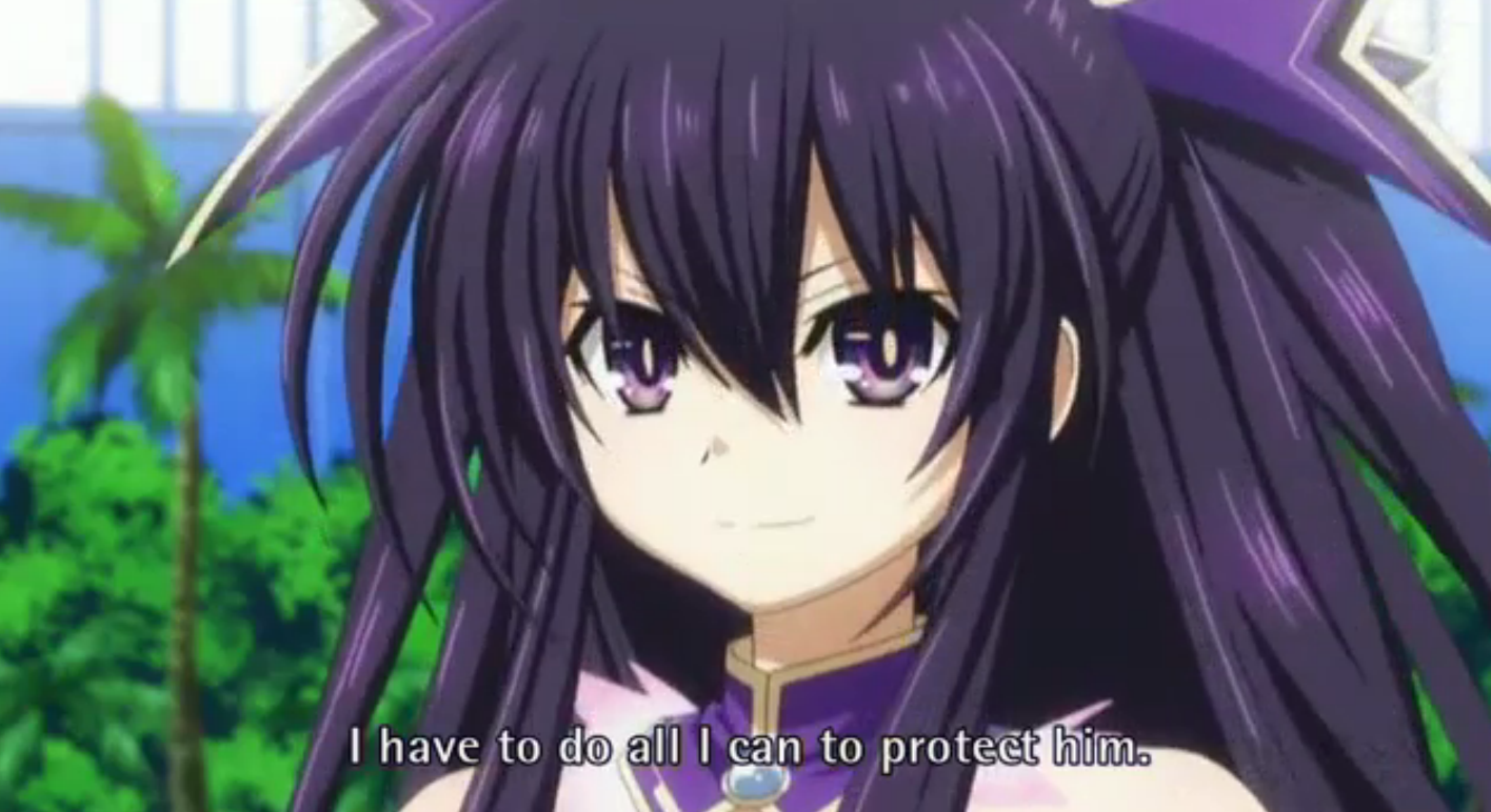 What is it with characters that are voiced by Marina Inoue getting their kiss cut off by the other love interests? I found it pretty interesting that they would do something like this. I guess that Tohka has been the most serious candidate in the harem for quite a while now and they wanted to remind us of that. Kotori and Mana are his sisters and I think that the writers are going to leave them out. Good job writers. Origami will have a pretty rough time not being too creepy for Shidou being his stalker and all that. Yoshino just seems like she isn’t a serious romantic candidate. We don’t know how old the Spirits are, but she is the loli character. Also, it looks like they are starting to have that sibling relationship. On the Kurumi front, we don’t really know what is going to happen with all of that. There is the possibility that saving her from her other selves and ending the murder may bring them very close, but they are pushing Tohka pretty hard. We also have to prepare for more spirits that will inevitably show up if a second season airs. I guess I should say that I really enjoyed this show, I don’t mind Tohka winning, and I look forward to the OVA and a possible second season.