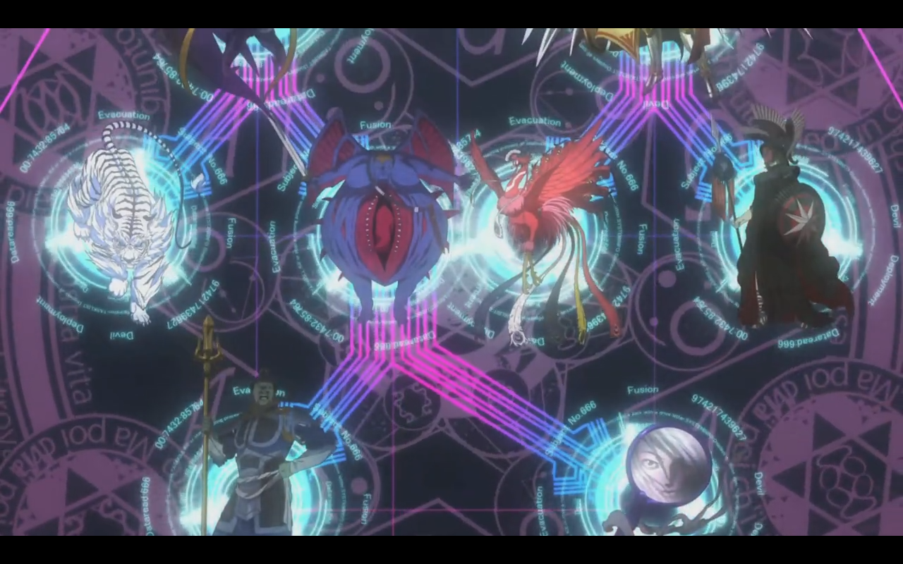 Hello everyone! With this week’s episode, we have finally reached the epic conclusion of Devil Survivor 2 the Animation. We continue with a final showdown between Hibiki and Hotsuin, as they firmly exclaim their reasons for fighting. While Byakko and Cerberus are fighting to the death, their masters are standing by to debate the characteristics that define living or being human. The two begin to get a tad emotional, as Hibiki claims that Hotsuin is not only human, but also a friend. Hotsuin appears to accept such claims, but decides to continue fighting for his pride and honor. A surprise that I enjoyed was Hotsuin’s sudden use of the game’s demon fusion mechanic. I honestly thought they wouldn’t bother touching demon fusions, since they ignored the feature for such a long time. Hotsuin pulls out all of the stops and summons the creepy SMT version of Satan to halt Hibiki in his tracks.
