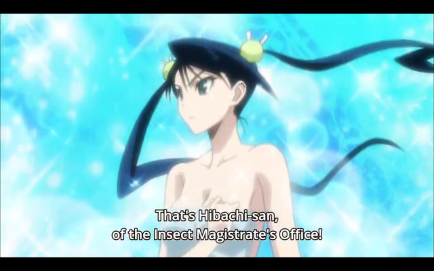 We are at the halfway point in Mushibugyou, so they decided to give us a recap episode. This is one of those series that airs for two straight seasons, so we will be getting thirteen more episodes. We didn’t get any new information regarding the story or characters this time around, so I will give you the fan service shots before we get started. I did avoid the most provocative shots because I am not going to give you guys porn.