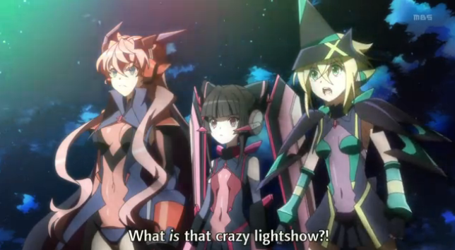 I am always so close to saying that I enjoy this series. They will do great things like introducing ridiculous action scenes. I don’t know about you guys, but I think that the over-the-top fighting that we get from this series is fun to watch. Then you have the oddly realistic stuff like the fact that these bad guys could easily take over the world. There is almost no one out there that can fight the noise and three of those people are on the wrong side of this equation. Then there is the stuff that irritates me. Hibiki’s armed gear is the power of holding hands. Do you need to go there? Can’t you say something about augmenting power? I can’t be the only person that is bothered by some of these lines. I don’t like the fact that Hibiki tries to reason with everyone, but that is basically unavoidable. Not wanting to hurt or kill people is something that always happens in anime and I am tired of it. Fight the damn bad guys. If it wasn’t for plot armor, then all of these protagonists would be dead.