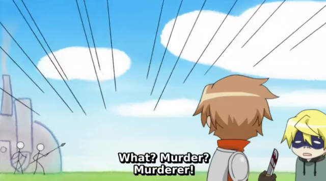 We got to see what the murder thing was all about. Hime and the gang needed a distraction because the guards at the city would obviously recognize the princess. Ares decided to stab Foifoi, give Alba the bloody knife, and run into town with Hime as they scream “MURDERER” in order to slip by the guards. That is a brilliant plan in all honesty. However, I am a bit disappointed by the fact that the blood was fake. I am used to this series giving us actual physical pain and Foifoi getting stabbed would have been great. Alba had to run because he is a wanted man, so Foifoi abandoned him soon afterward. On the other end, Samejima explained that he was able to enter the pocket dimension and rid Januar of his brainwashing through the power of manly friendship. I can accept that. Oh, and Ross is getting sick because he has a physical need to abuse Alba that is not being met. Fun stuff if you ask me.