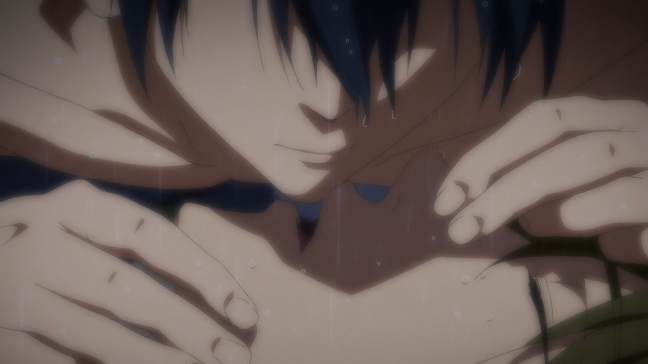 Still, this episode does a pretty good job of reinforcing the two big ships: Haru/Makoto and Rei/Nagisa. Even Mother Nature ordained that they be split up into these respective pairs. Upon reuniting though, they take shelter in a haunted house, another stable of a youthful summer experience. Also the perfect excuse to see the boys without their shirts for an extended period of time, too. I seriously hope they brought extra clothes though.