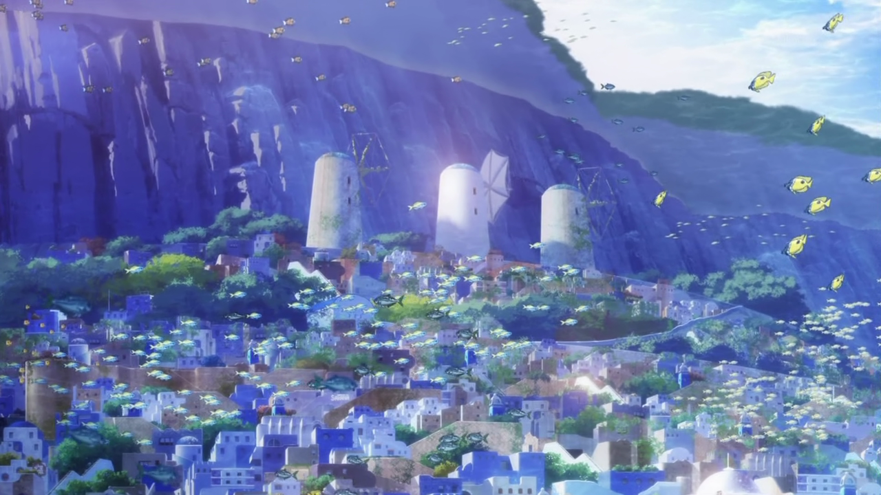 PA Works has dished out another interesting and visually appealing anime series, known as Nagi no Asukara. This series is another fantasy that focuses on an underwater world of mermaids being integrated into the normal world of humans on land. Now despite all of the characters looking very human, apparently the people of the land don’t approve of those from the sea, and vice versa. This whole theme of tension and discontent between the two races of human plays a big role in this first episode and probably will continue throughout the series. We eventually learn that the humans on the land originated from the sea and annually have an offering ceremony to appease the sea god that they sort of betrayed by favoring land. This detail will play a role later in the episode, but let’s move on to introduce the main cast from this episode.