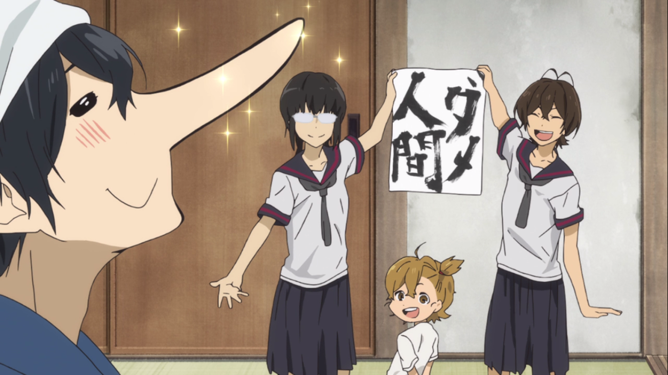 So this series actually snuck its way onto the list at the very last second, beating out Tokyo Ghoul which was initially sitting in the number 10 slot. When I first read the synopsis for Barakamon, I thought how interesting could some calligrapher guy living on an island with some kid be interesting? Well, it turns out that it’s not so much the plot that makes Barakamon great, but rather the hilarious interactions between the large cast of lively characters. Unlike the relatively idyllic calm that I loved in the similarly-setted Non Non Biyori, the calm in Barakamon is scattered with lots of screaming and overreacting, which makes for great comedic pacing. I can never get enough of Daisuke Ono screaming in terror.