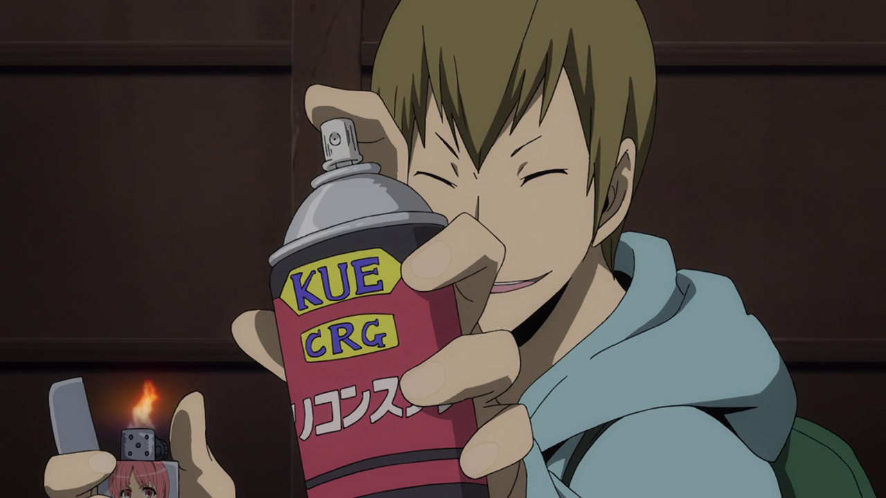 In Durarara!!, we can always count on Izaya to create havoc in Ikebukuro. He’s like a more cowardly version of Gotham’s Joker. Thanks to his messages, Rokujou’s girlfriend and three other girls end up getting kidnapped by a gang of unsavory individuals from the first season. Thankfully, Mikado comes to the rescue! Except unlike his buddy Masaomi, Mikado’s kind of helpless in a street fight and gets handily beat up.