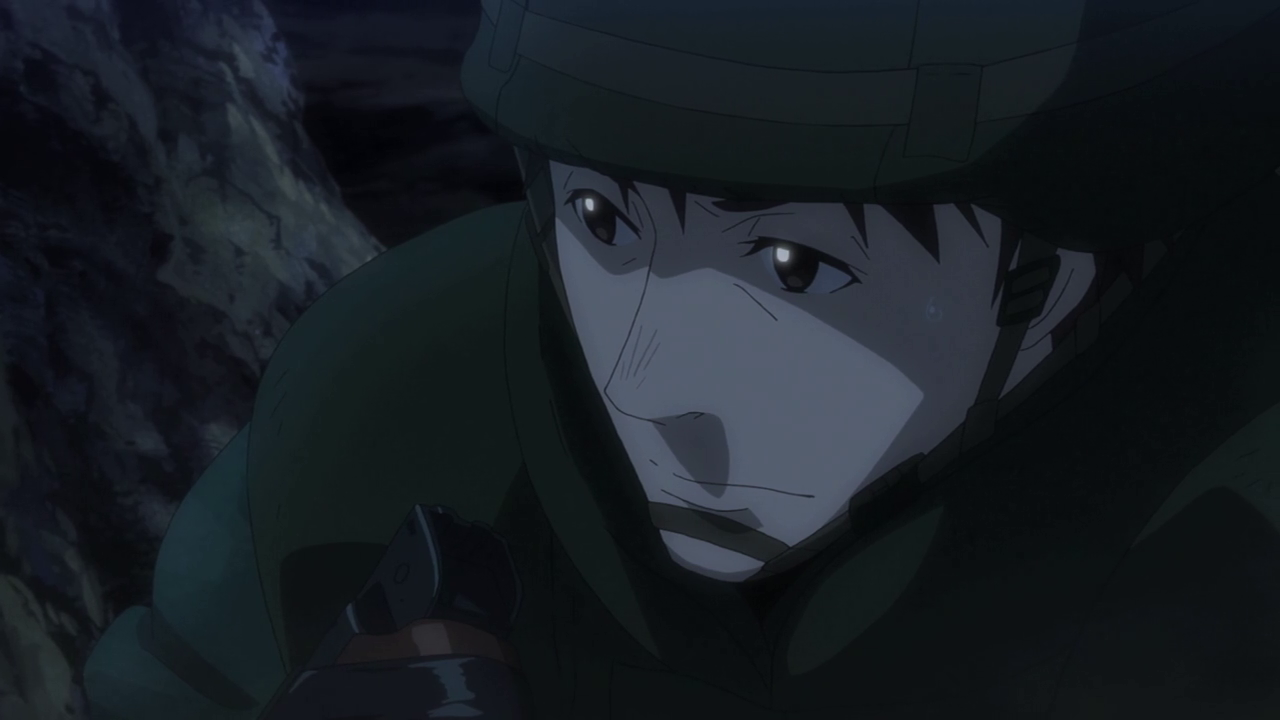 I’m not entirely sure if I liked the pacing of the first episode, but it’s likely a necessary evil needed to push series into the meat of the story. Five minutes in and we already see people getting brutalized by monsters. Then there’s a slower, expository section about Itami’s ascension to the rank of Second Lieutenant. We barely get to know about him or his comrades in arms before we’re shoved off again into battle. I take it on faith that we’ll learn more about his platoon, as well as all of the other characters, especially given that this is a 24 episode series. I just can’t shake that there could have been a better way to order these events in the narrative.